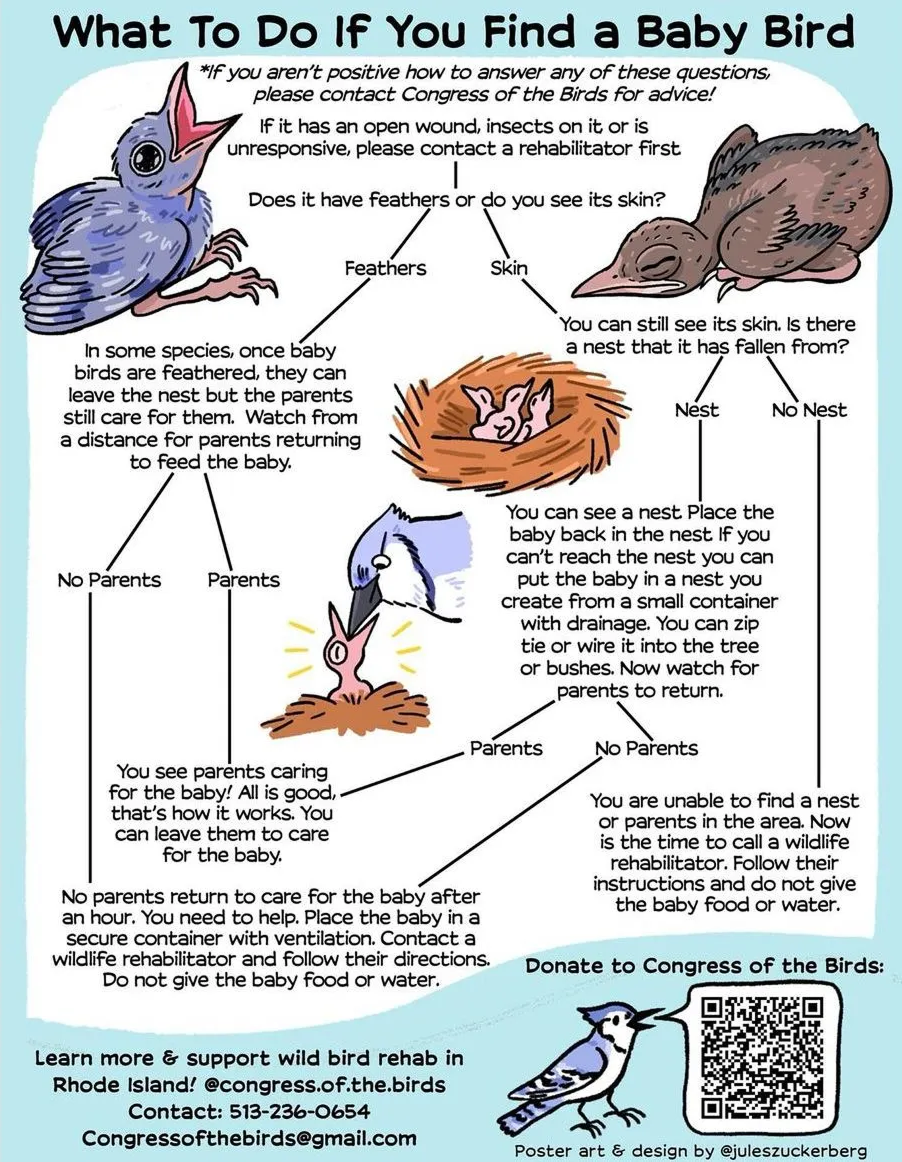 If you find an injured or orphaned baby bird, please CALL A WILDLIFE REHABILITATOR immediately. It is illegal to keep these birds as pets without the proper permitting and facilities.