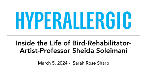 Sheida Soleimani is an Iranian-American artist, educator, activist, and federally and state-licensed migratory bird rehabilitator. She specializes in the care of all species of wild birds, and has rehabilitated thousands of patients over the past decade. Soleimani founded Congress of the Birds in the basement of her home, slowly growing it into a small but vital rehabilitation clinic; in 2024, it formally became a nonprofit dedicated to providing medical treatment, rehabilitation, and safe release for injured wild birds.