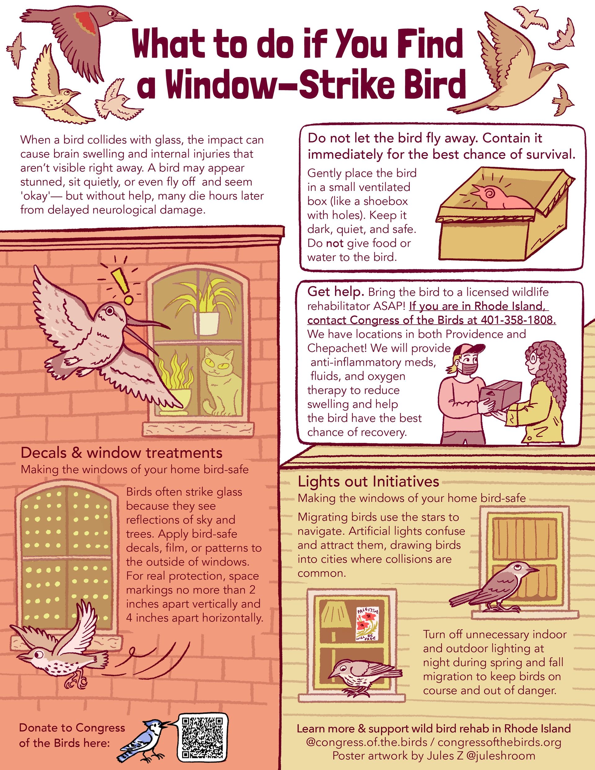 All of our posters were created by Jules Z, our inaugural Congress of the Birds Artist in Resident. Follow them on Instagram at @juleshroom